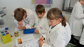 Im Labor des Hygienemuseums durften die Schülerinnen und Schüler selbst zu kleinen Wissenschaftlerinnen und Wissenschaftlern werden: